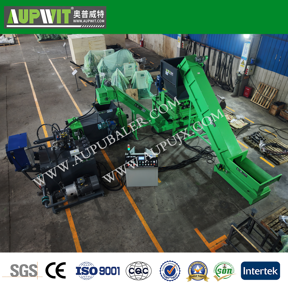 Измельчение (опционально) – при необходимости длинная витая стружка предварительно дробится в шредере или стружкодробилке до фракции, пригодной для брикетирования.