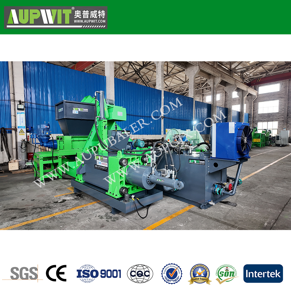 Брикетирование – основной агрегат линии. Гидравлический пресс высокого давления (усилие от 100 до 500 т и более) формирует брикеты заданного размера (чаще всего цилиндрической или прямоугольной формы). Плотность брикетов достигает 5–7 т/м³ для черных металлов и до 4–5 т/м³ для цветных.